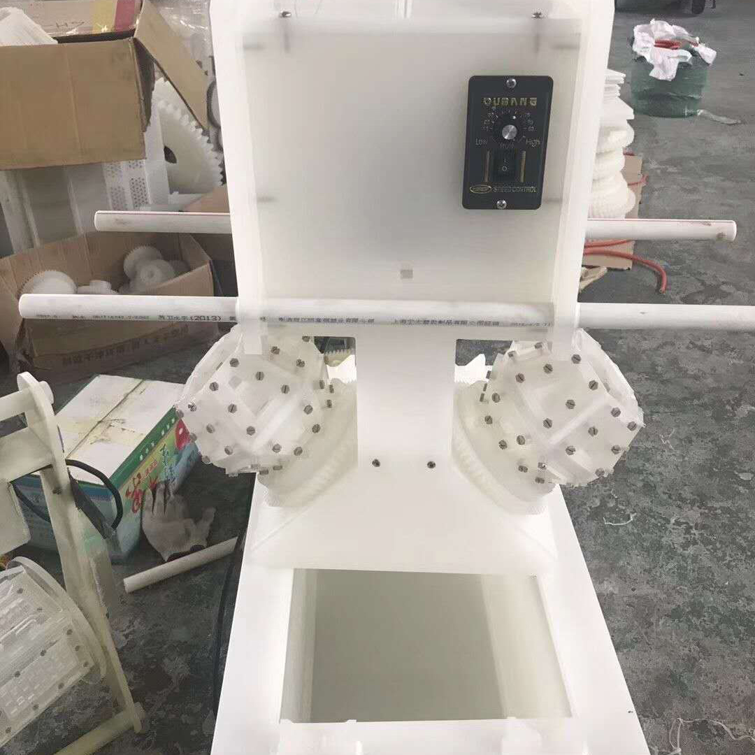 2、滚筒槽边外传动形式:适合滚筒装载量大、数量多的情况。 小型滚镀设备,是用进口PP板材,经过剪裁板,铣齿轮,电脑打孔,传动部分组装,和焊接而成.他具有体积小,容易操作,占地面积小,价格低等特点,一直以来被广大电子厂或者需要小量的电镀的客户提供极大的方便.