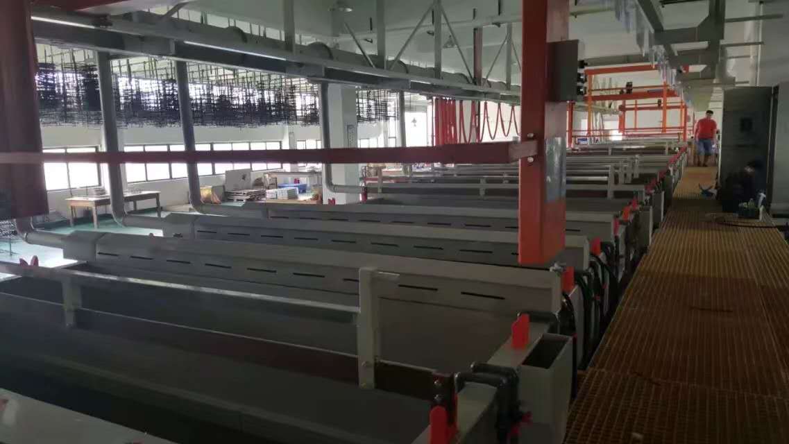 电镀处理过程中所用的设备主要有各类固定槽、滚镀槽、挂具、吊篮等。镀后处理是对零件进行抛光、出光、钝化、着色、干燥、封闭、去氢等工作,龙门式挂镀生产线,根据需要选用其中一种或数种工序使零件符合质量要求。镀后处理常用设备主要有磨、抛光机,各类固定槽。